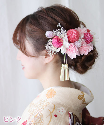 小さめのお花をたくさん使った、上品さに可愛さをプラスした髪飾りです。