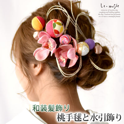■ 商品名:和装 髪飾り 桃手毬と水引飾り 全2色