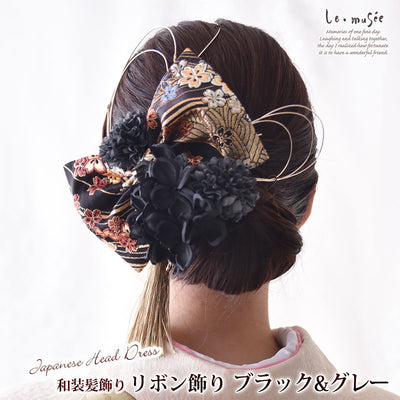 袴 髪飾り リボン飾り ブラック & グレー 商品詳細